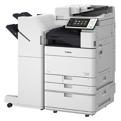 The Canon imageRUNNER ADVANCE C5550i is a high-performance color multifunction printer/copier delivering up to 50 ppm in both color and monochrome. It features a 3-inch touch screen, 1200 × 1200 dpi print resolution, standard memory and storage (4 GB RAM, 250 GB HDD), and supports advanced finishing options (booklet, staple, hole-punch). With security features, mobile print support, and expansions up to 6,350 sheet capacity, it’s ideal for medium-to-large office workflows.